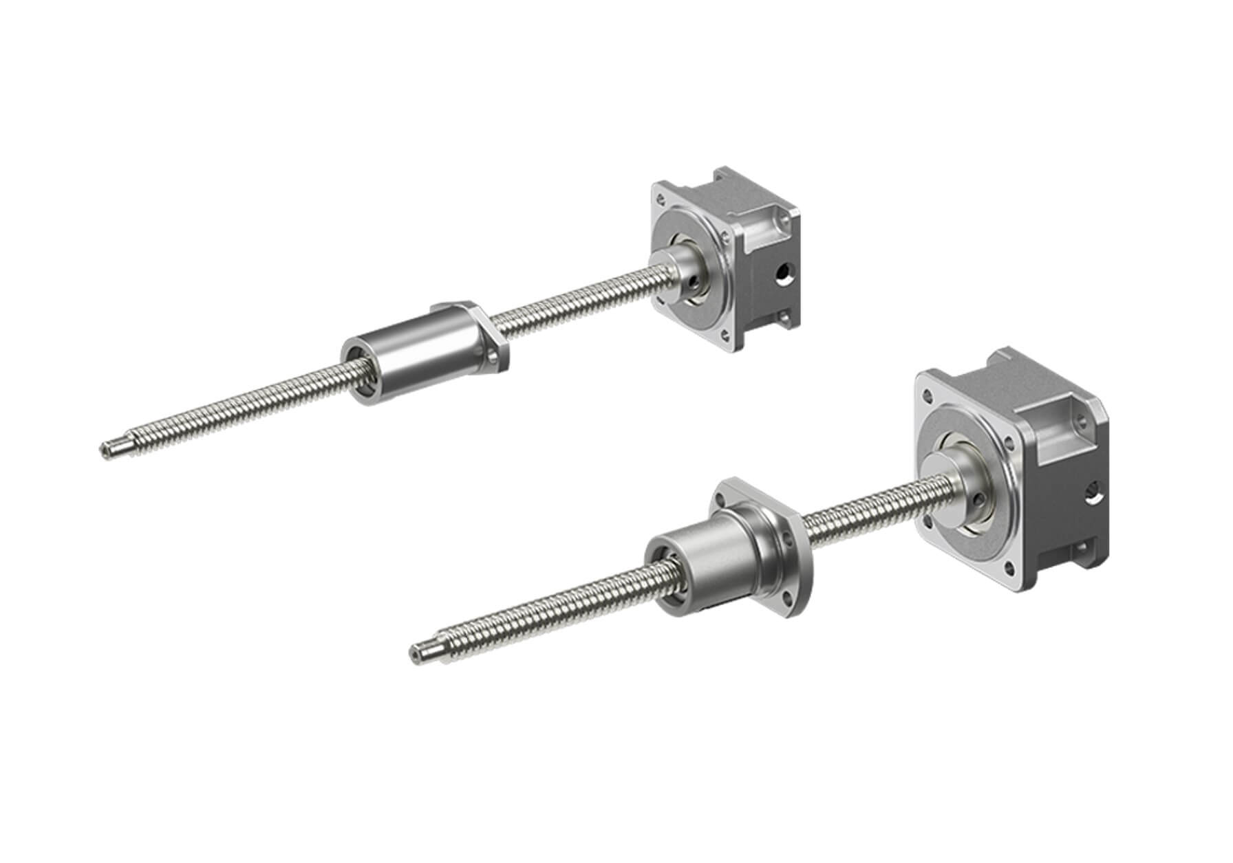 可與步進馬達組裝以實現直線動作,產品由轉造滾珠螺桿與螺帽組成,反覆定位精度為±0.01 mm,無需聯軸器即可輕鬆組裝,較自製機構能有效減少零件數量及組裝工時。