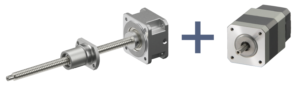 可與步進馬達組裝以實現直線動作,產品由轉造滾珠螺桿與螺帽組成,反覆定位精度為±0.01 mm,無需聯軸器即可輕鬆組裝,較自製機構能有效減少零件數量及組裝工時。